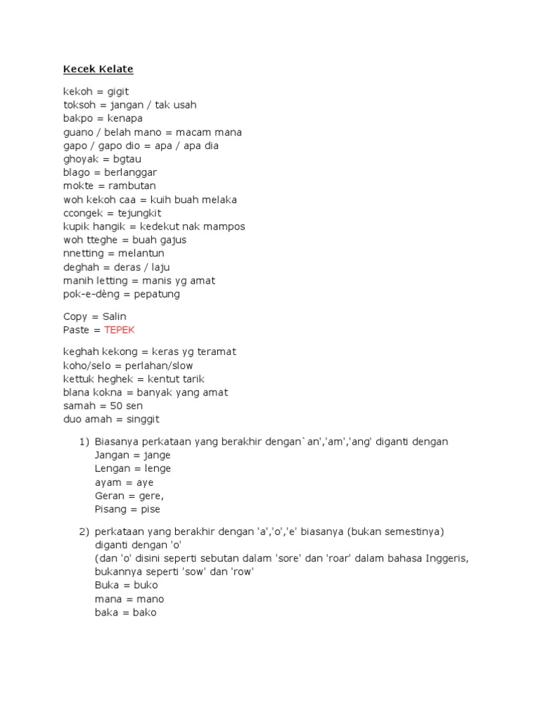 August 29 2014 at 1030 PM amaraizat said. Ppatak -DasarPaling bawah -Contoh. Perkataan dalam loghat kelantan yang di anggap tak manis di dengar di tempat lainantaranya -CEBOCK.