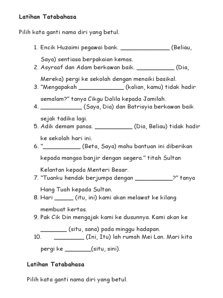 Setiap ayat mengandungi satu kesalahan kata atau istilah dan satu kesalahan tatabahasa. Interested in flipbooks about Latihan Negeri Kelantan. Sektor Pengurusan Akademik Jabatan Pelajaran Perak 7 24 Adik Airil sayang _____ Si Comel kucing Siam yang dihadiahkan oleh Kak Noni.